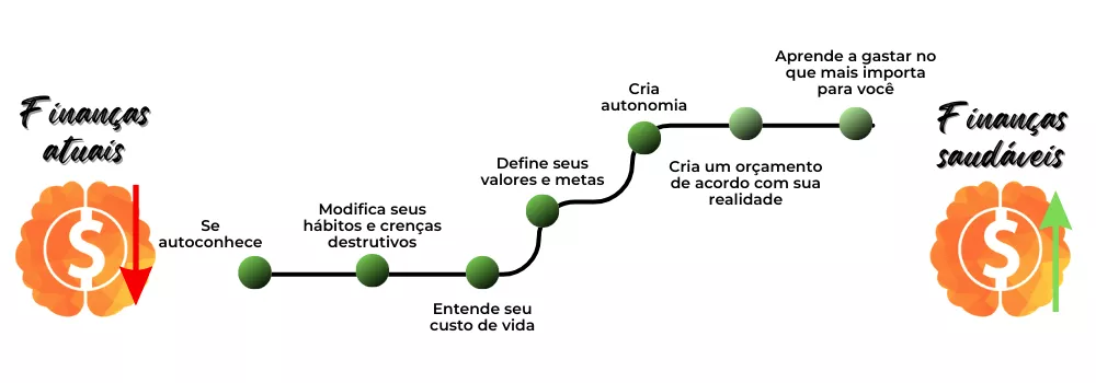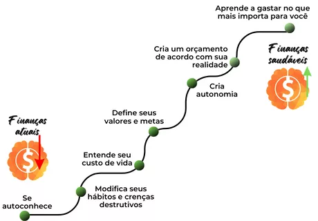 - Autoconhecimento: para conhecer seus hábitos, crenças, medos anseios etc. Somente nos conhecendo conseguimos descobrir nossos gatilhos para gastar mal nosso dinheiro, e a partir daí podemos criar estratégias para sempre fazer escolhas inteligentes.