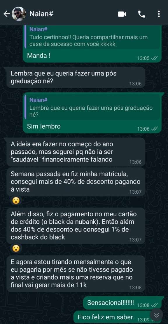 Conseguiu conciliar seus planos de desenvolvimento de carreira, junto com suas metas de lazer. Conseguiu aproveitar melhor seu dinheiro, sem deixar de investir na sua vida profissional